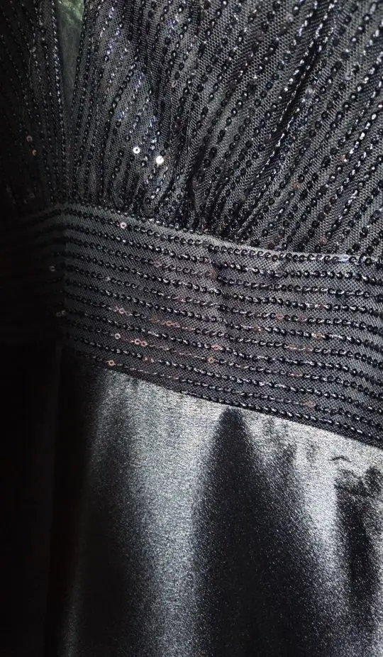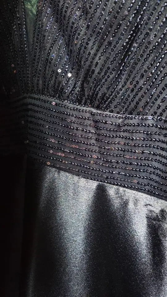 O decote profundo em V traz um toque de sensualidade na medida certa, enquanto o tecido reluzente e o design até o chão garantem um visual digno de red carpet. 🌟